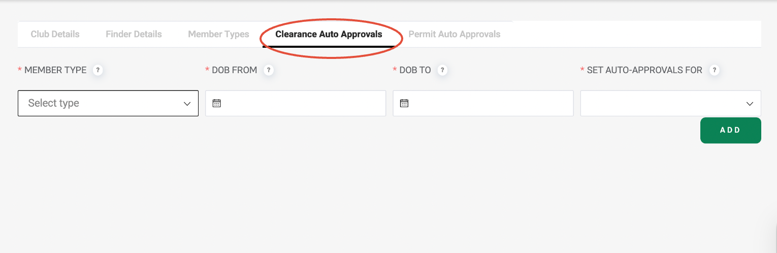 Step 2 - Select My Club (under the Administration menu), and select the Clearance Auto Approvals tab.
