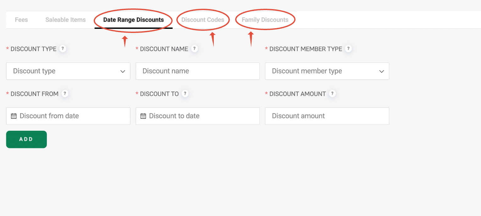 - Family Discounts-set up discounts for when families are registering more than one member.