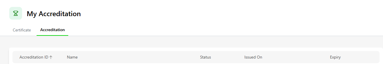 My Accreditations - Will list your certificates and accreditations, along with accreditation Status and Issue/Expiry dates.