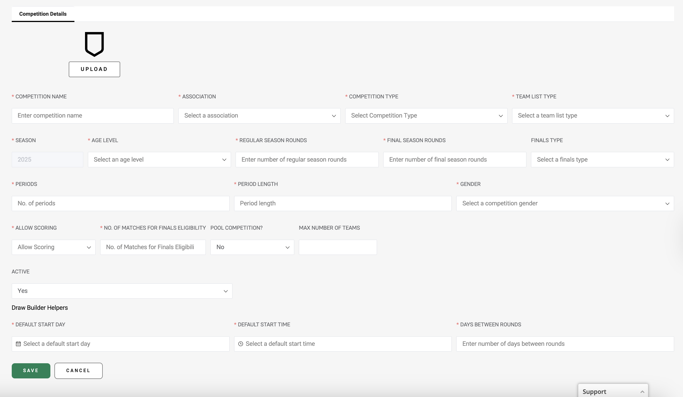 - Draw Builder Helpers - These settings assist when building the draw for this competition. These can be changed later but you’ll need to enter a Default Start Date and Time and: